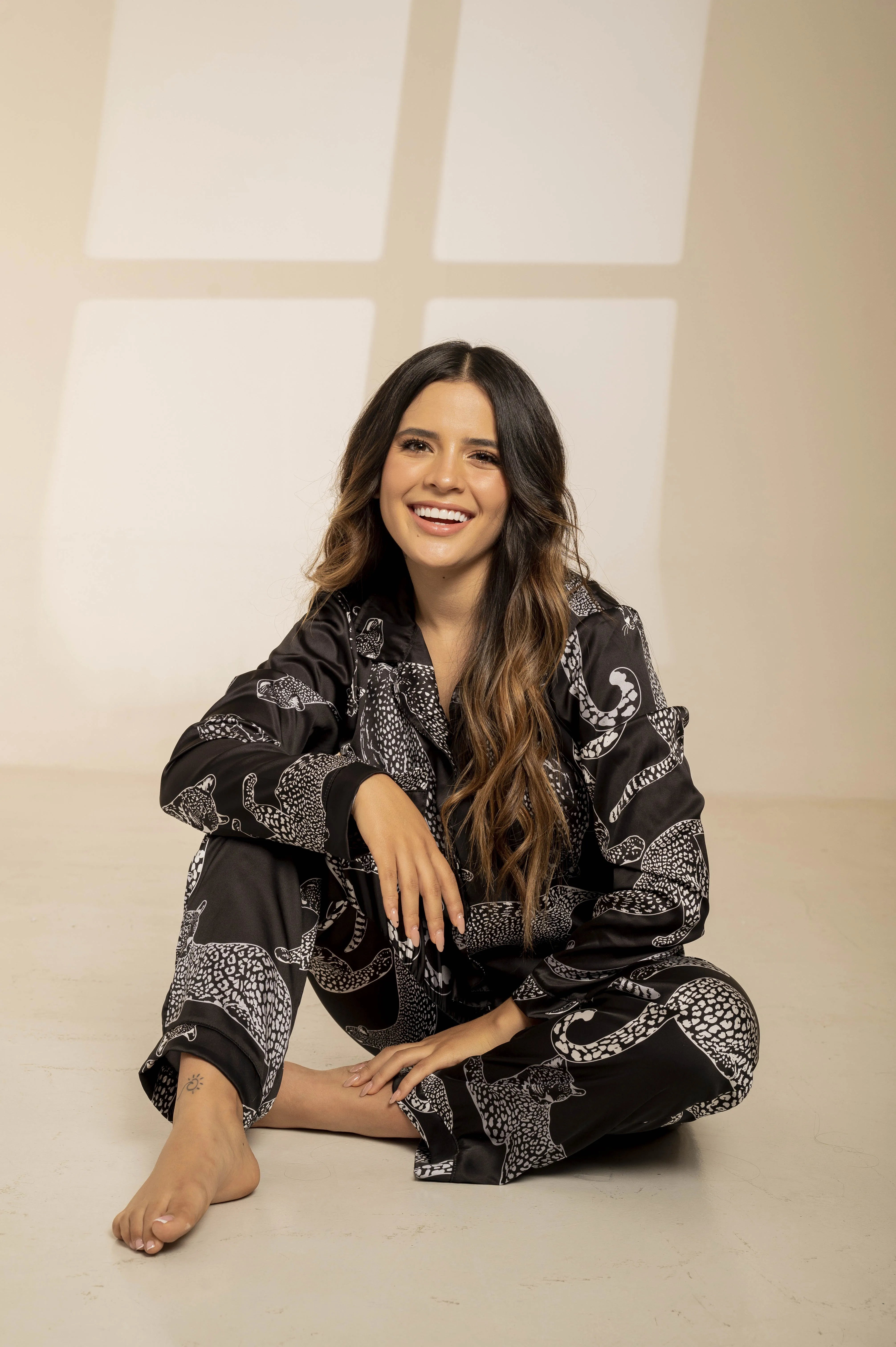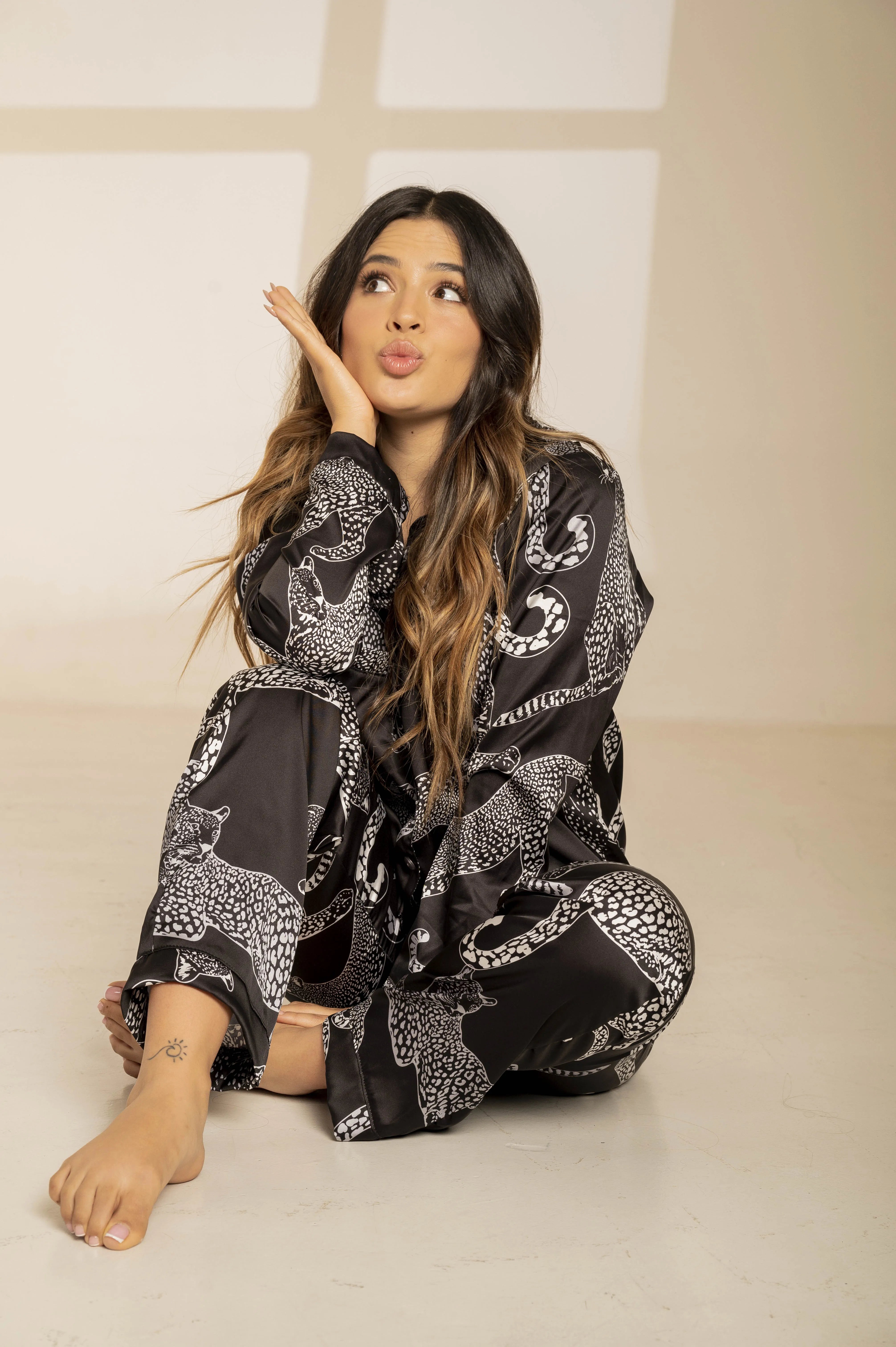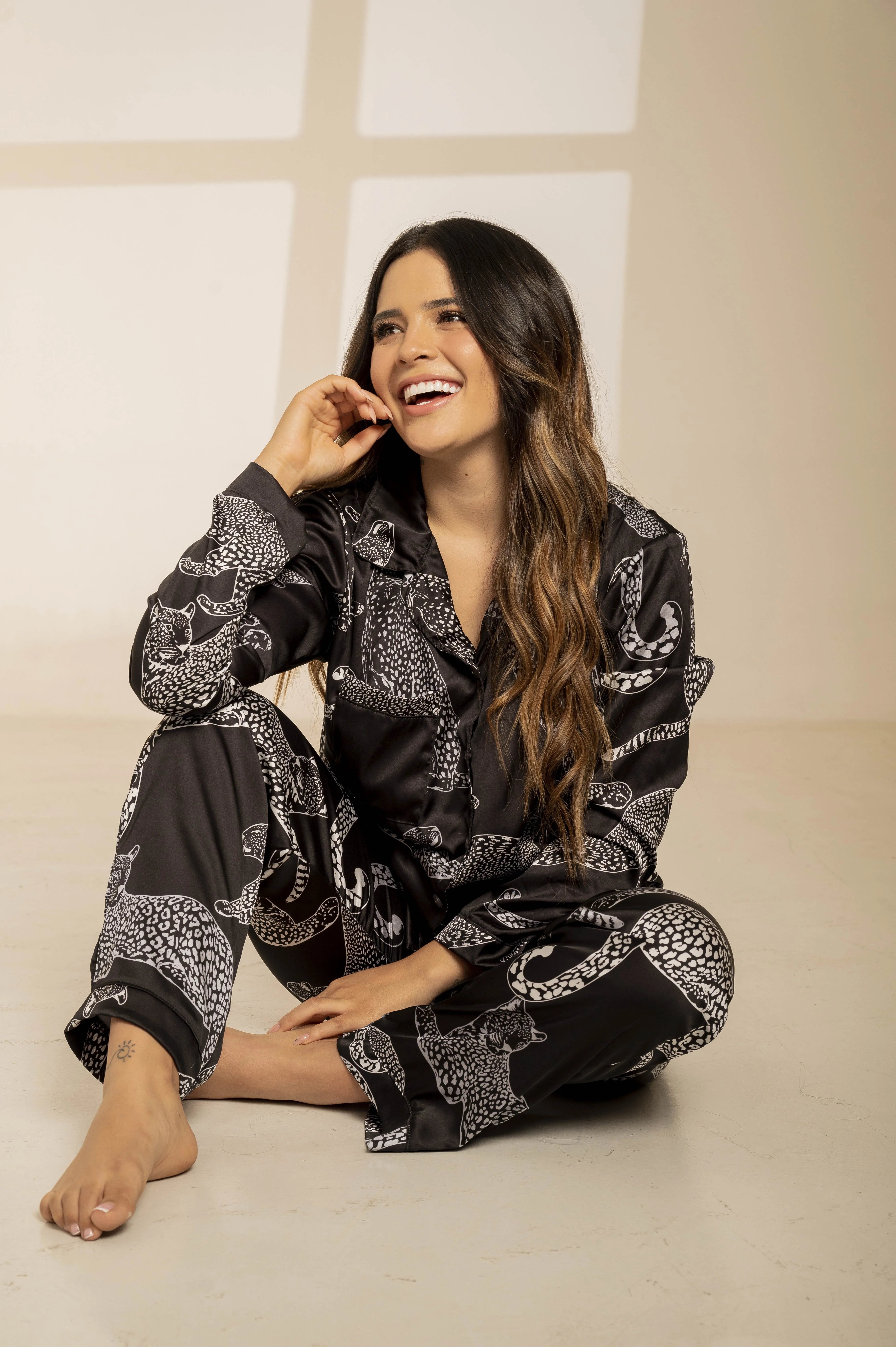 Deja que la elegancia y el espíritu divertido se encuentren en nuestro pijama PANTERA. Confeccionado en seda de la más alta calidad, este conjunto es el equilibrio perfecto entre lujo y comodidad. El suave tejido de seda se desliza sobre tu piel, creando una experiencia sensorial inigualable para un descanso de calidad.